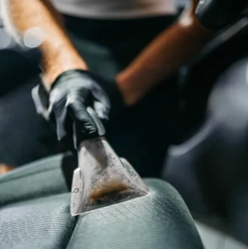 Upholstery, seats, and mats light vet vac, or Leather seats wiped clean & conditioned.